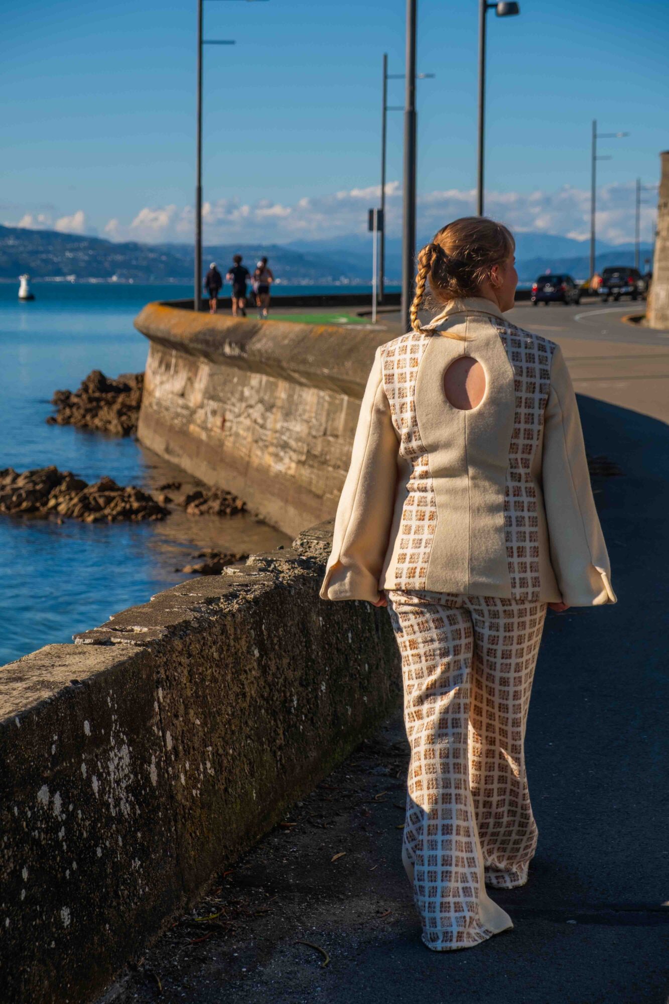 Inspired by Te Papa Garment the Bustle Dress, this project had me reimagining historical into the contemporary. Working with non stretch fabric, I started through making bodice samples. I tried out drape for the first time and learnt how to transfer it to flat pattern. The most difficult part was grasping the intricacies of the pattern making process, the most rewarding was the styling and photoshoot. What I learnt the most in this project was how different fabric weights react and behave, and this is something I aim to improve on in my material choice.