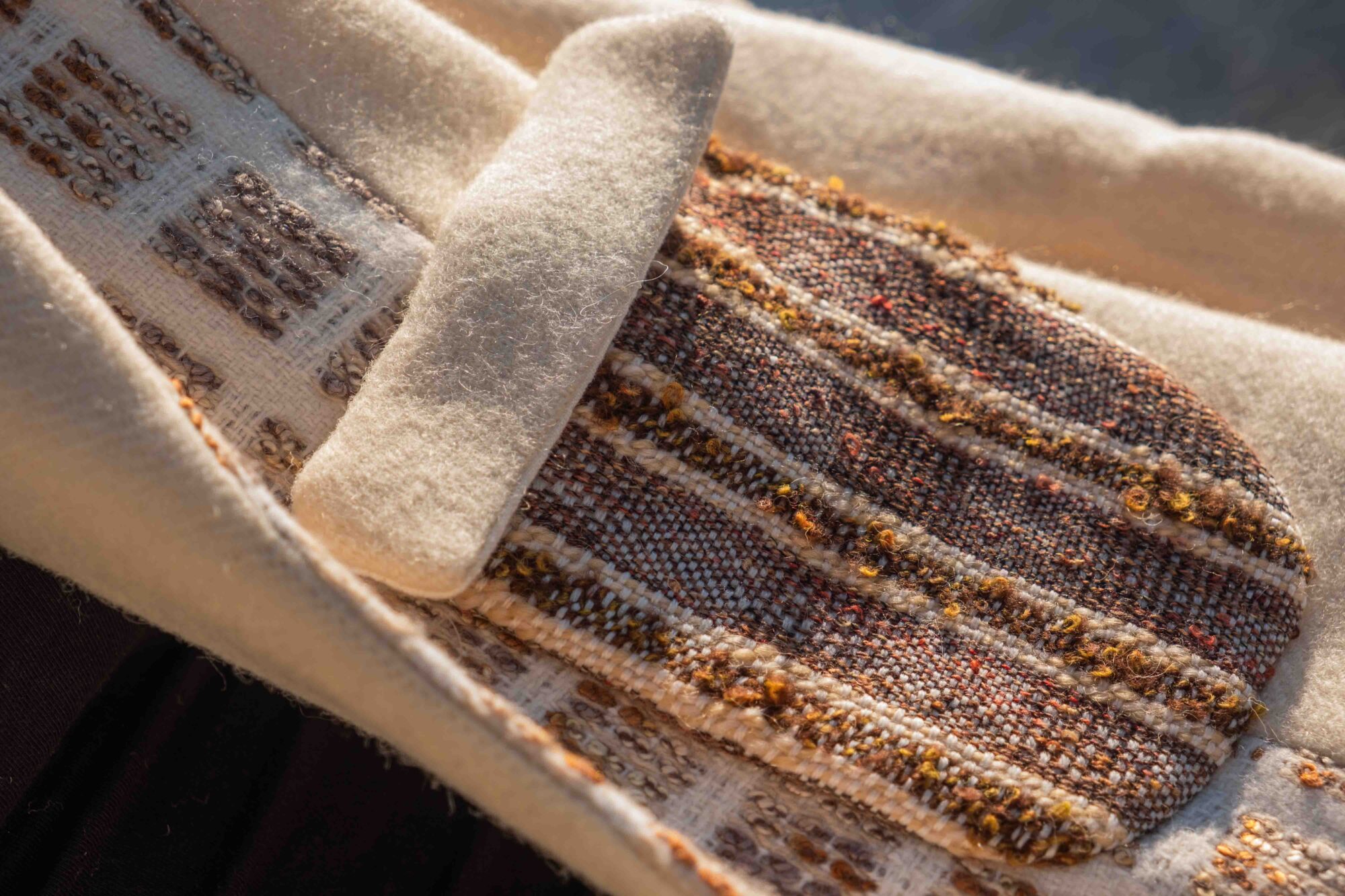 Materials: Wool blankets (Jeanine Clarkin), Silk Tablecloth (Second Hand) Fusing and Acrylic Yarn (Massey).
