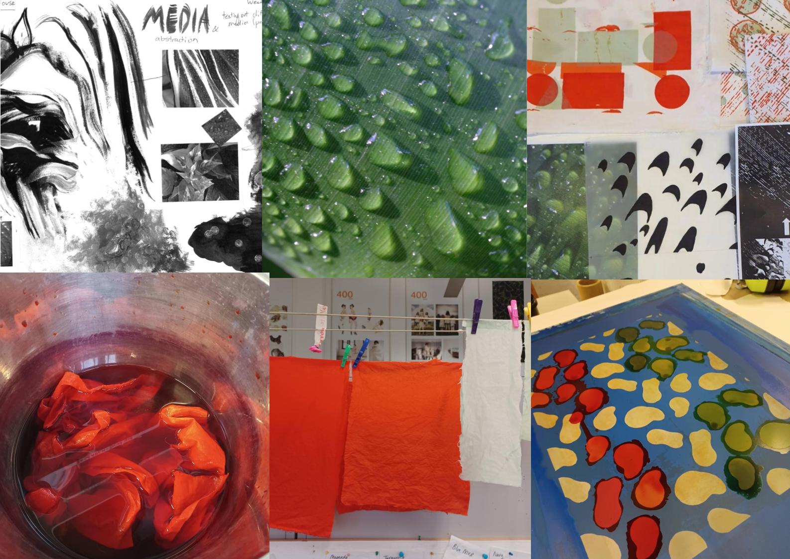 For my Screen Printing class I developed motifs based on water droplets on leaves. From then I created repeat patterns on photoshop and exposed it onto my screens. I mixed together my transparent pastes into certain colours and dyed my fabrics too. I also did polychromatic prints. I enjoyed most learning how to calculate and mix colours for dyeing.